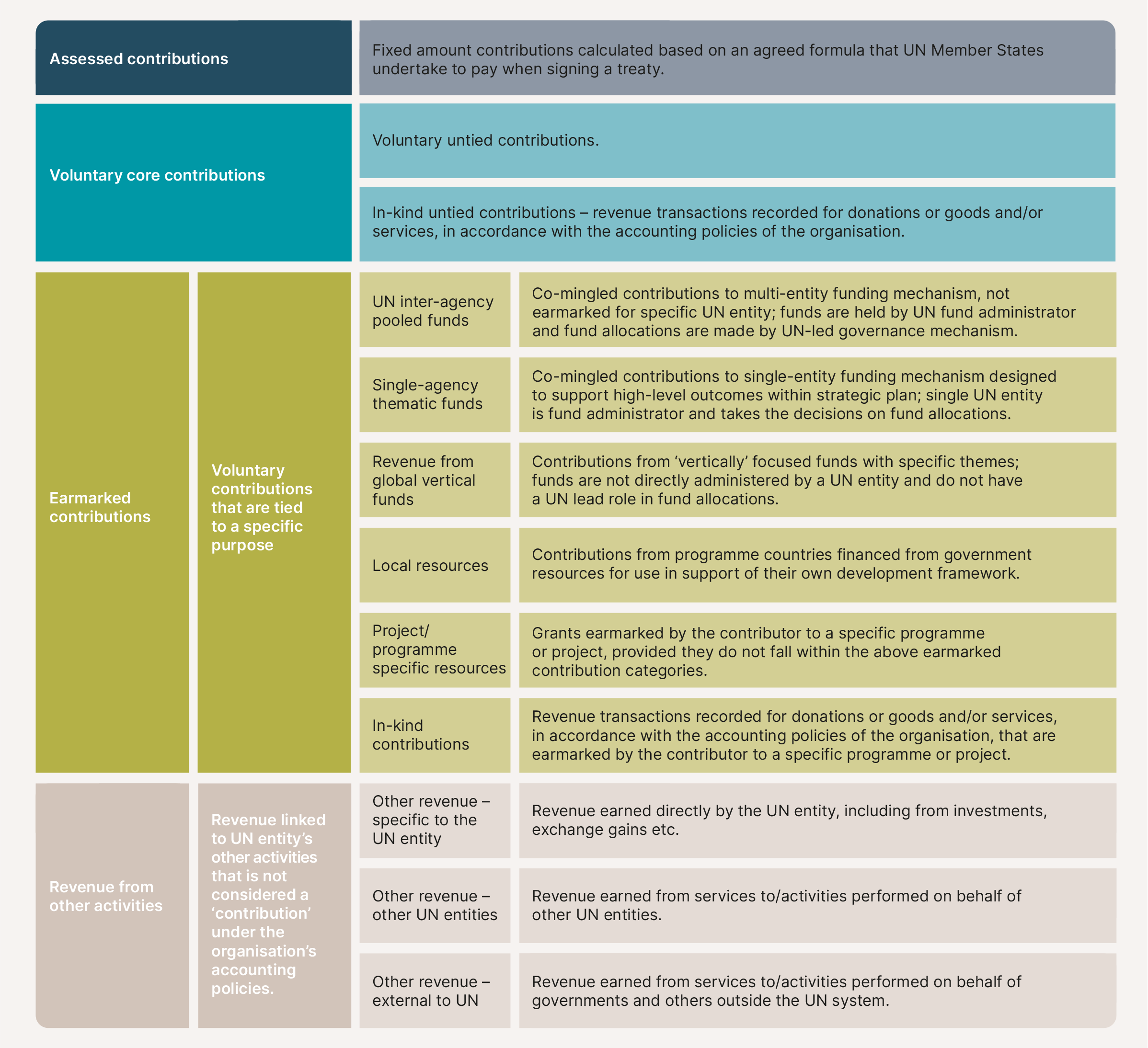 Source: Data Standards for UN System-Wide Reporting of Financial Data.
