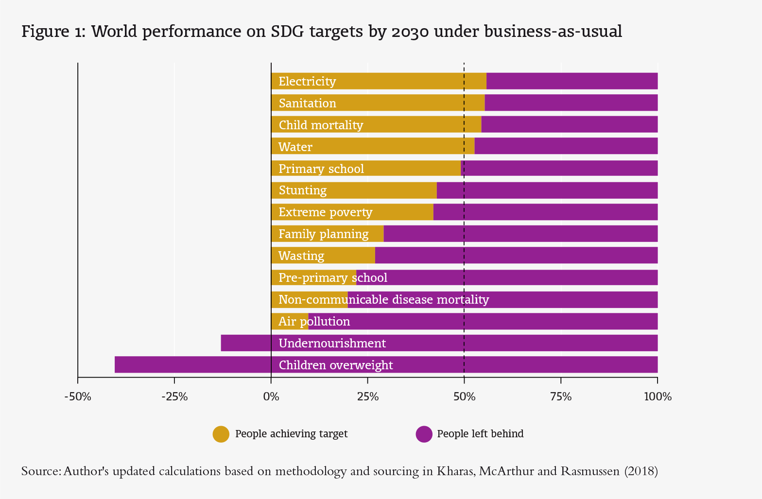 As we approach the mid-point of the Sustainable Development Goals (SDGs) period, it can be seen that this gap is not only yawning, but growing. New pressures arising from vaccination, humanitarian relief, pandemic health surveillance, nature, adaptation and resilience, debt service, a just green transition and refugees from the Ukraine war are placing the development system under huge strain. As Figure 1 below shows, only a handful of SDGs are on track to achieve even half of their final 2030 target – most are significantly off-track, with some even going in reverse.