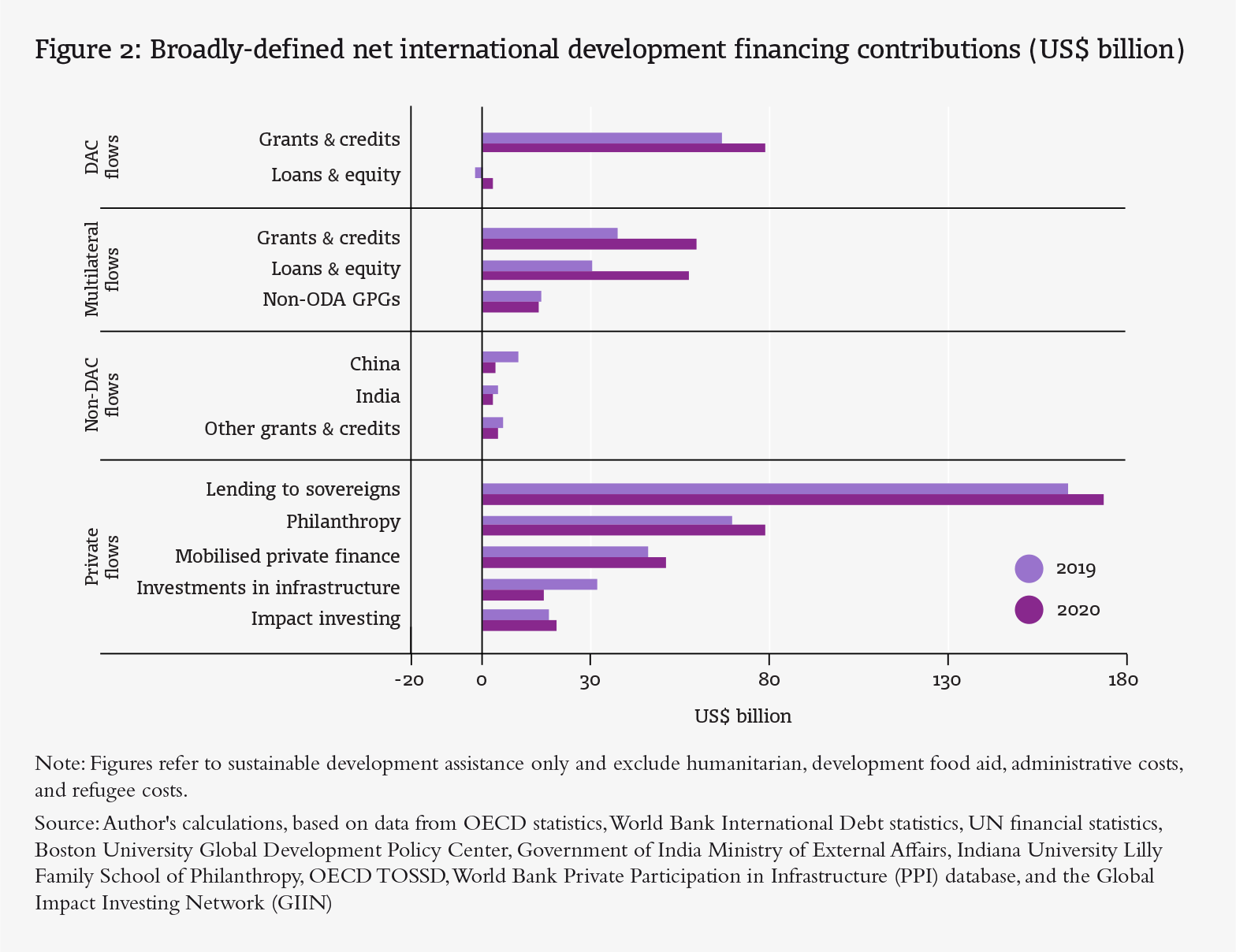 The issue in 2020, then, was not so much that ODA shrank, but that the priorities for aid increased across the board. There were new requests for aid to deal with debt crises; offset humanitarian emergencies; purchase vaccines and get shots in the arms of the vulnerable; keep promises made to increase climate-related financing for mitigation and, especially, adaptation; finance biodiversity conservation in the face of accelerating species extinction; and – all the while – help countries expand fiscal spending in response to the collapsing global aggregate demand threatening trade, tourism and remittance revenues.