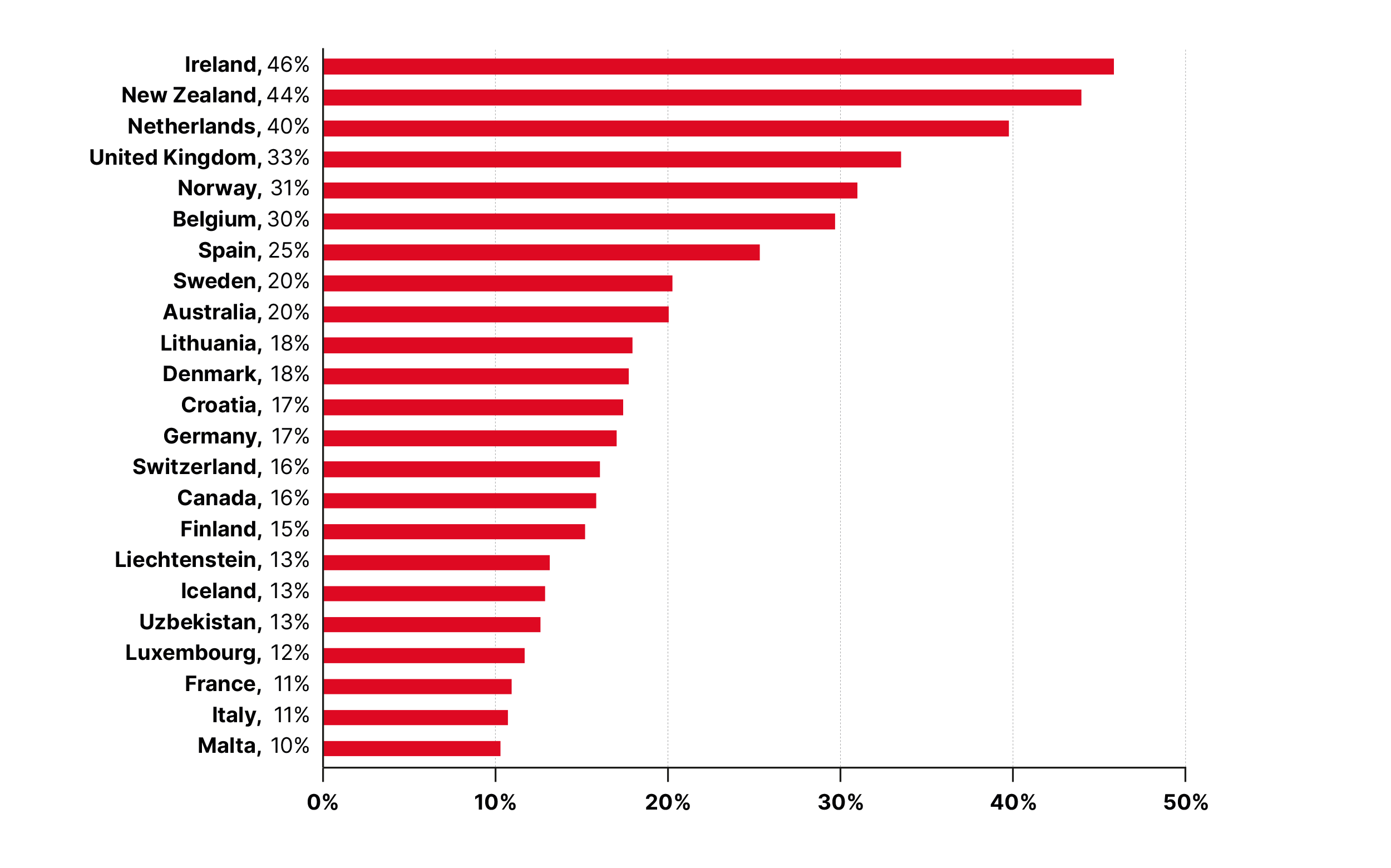 23 countries provided 10% or more