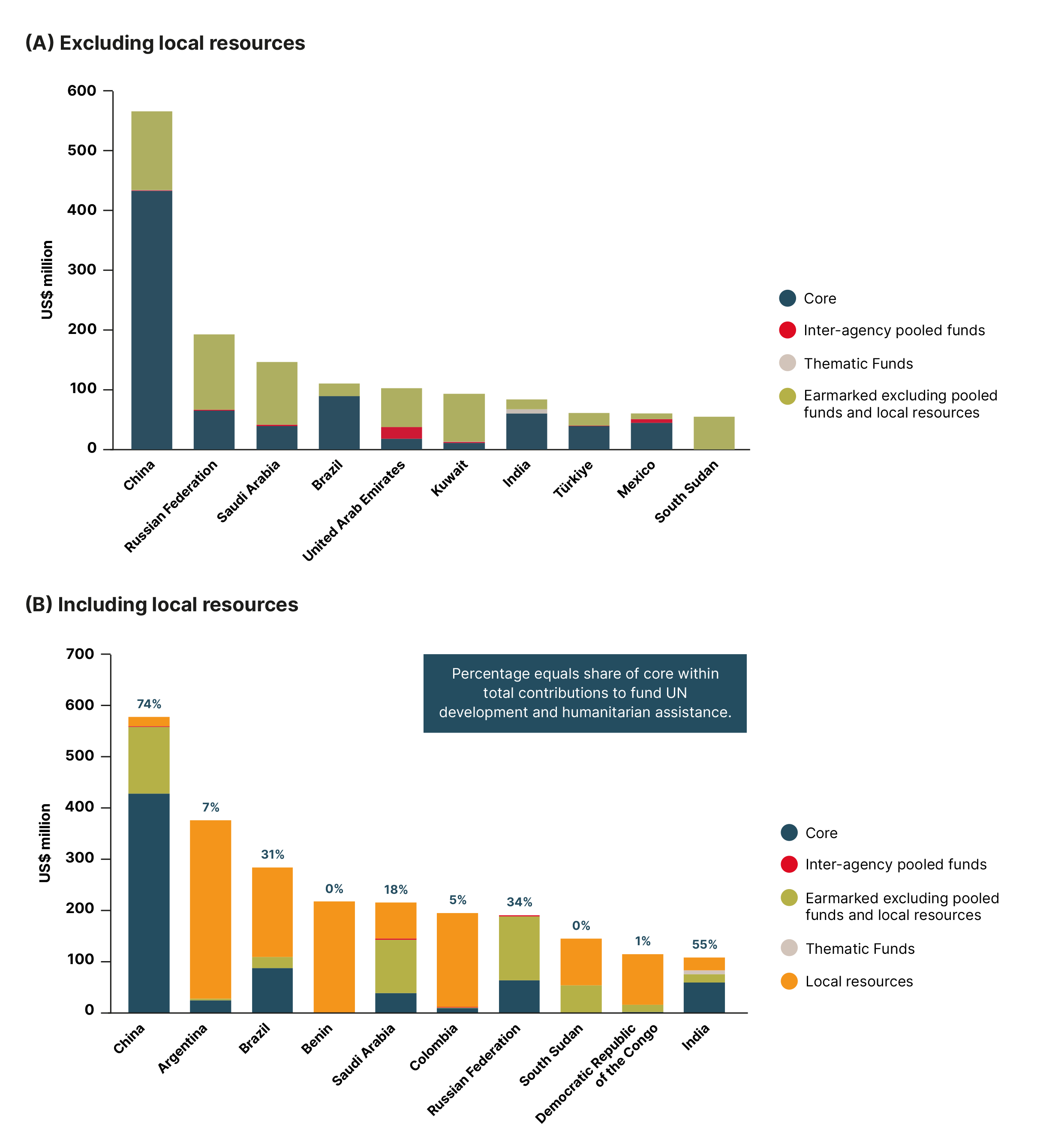 Funding composition for development and humanitarian assistance: Top non-OECD-DAC member state contributors, 2023 (US$ million)