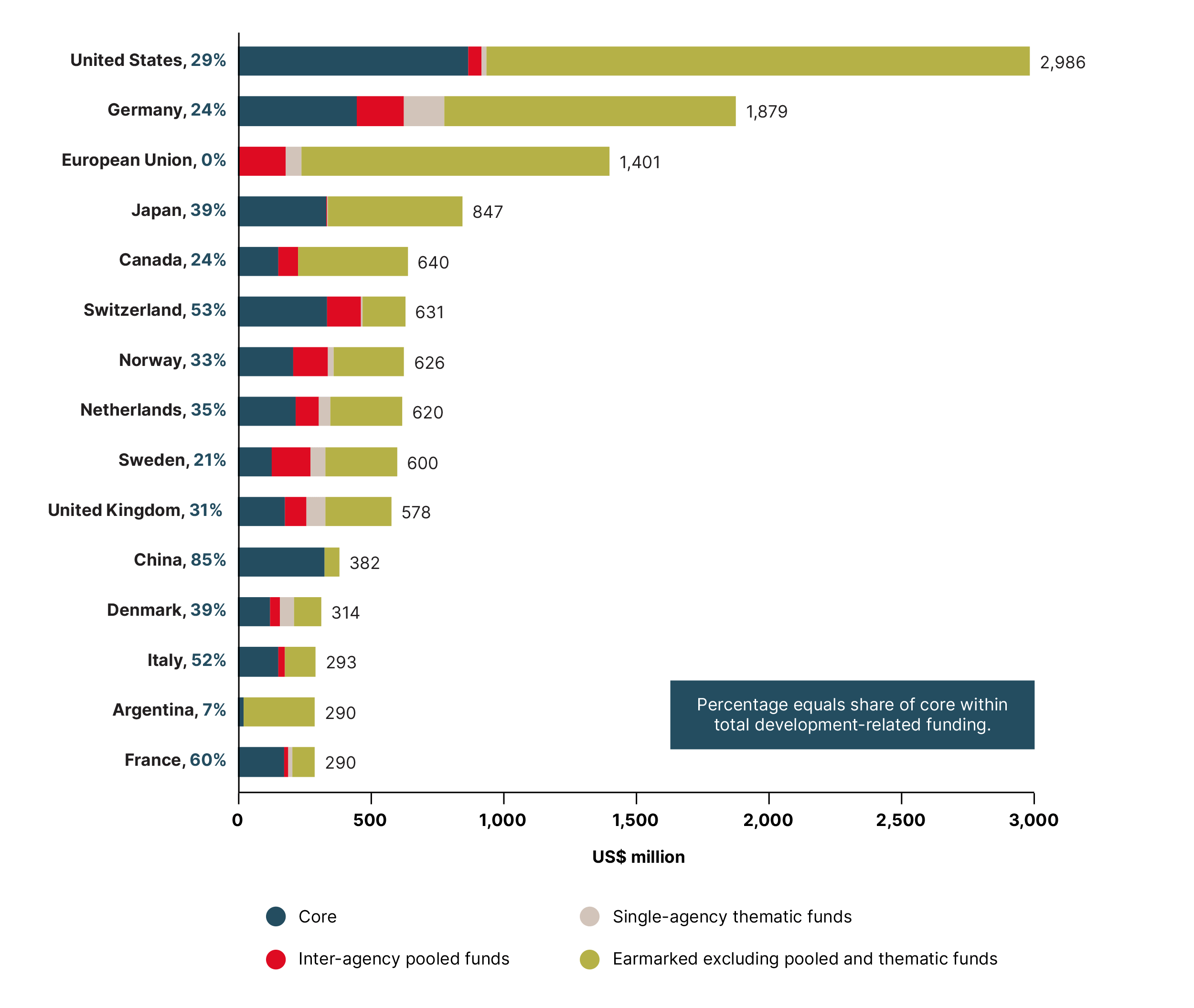Funding composition for UNDS development assistance: Top 15 contributors, 2022 (US$ million)