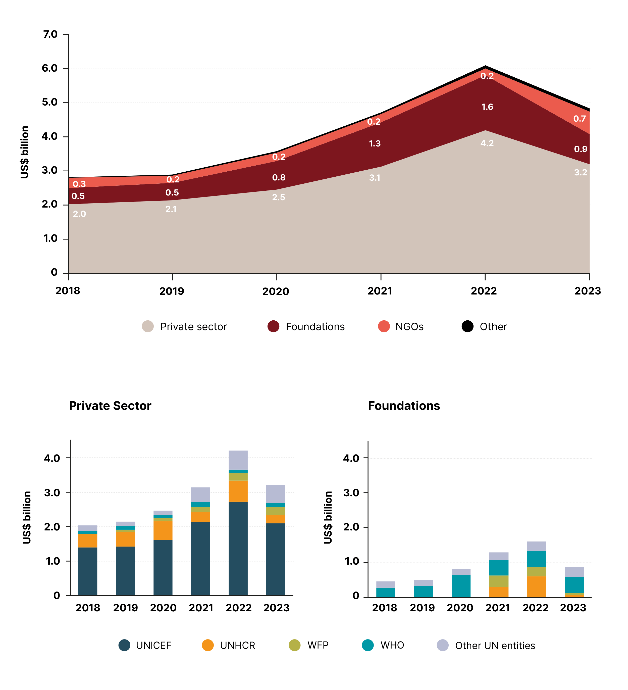 Other non-state funding to the UN system, 2018–2023 (US$ billion)