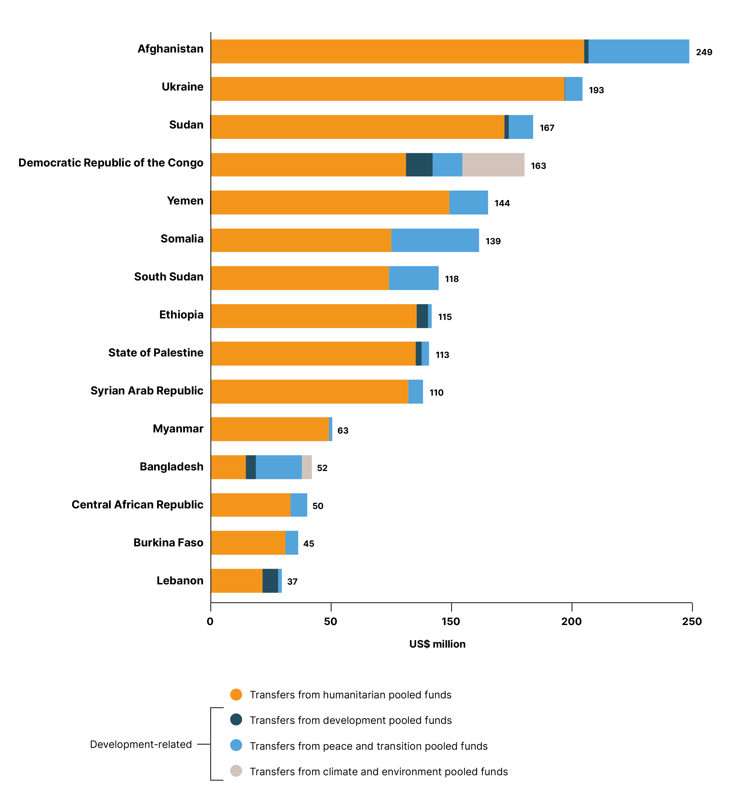 Top UN inter-agency pooled funds recipient countries or areas, 2023 (US$ million)
