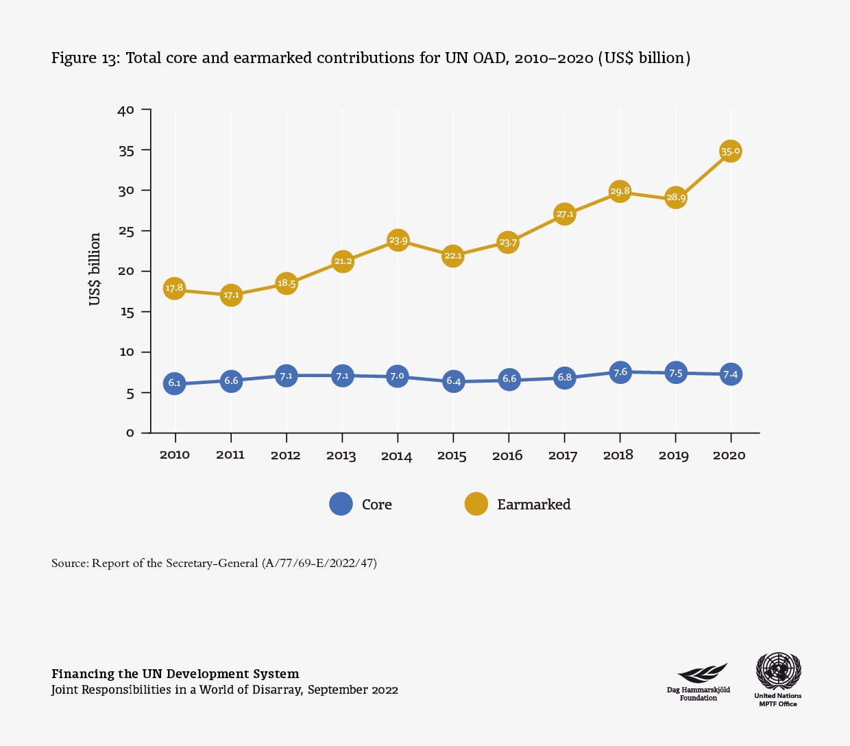 Total core and earmarked contributions for UN OAD, 2010–2020 (US$ billion)