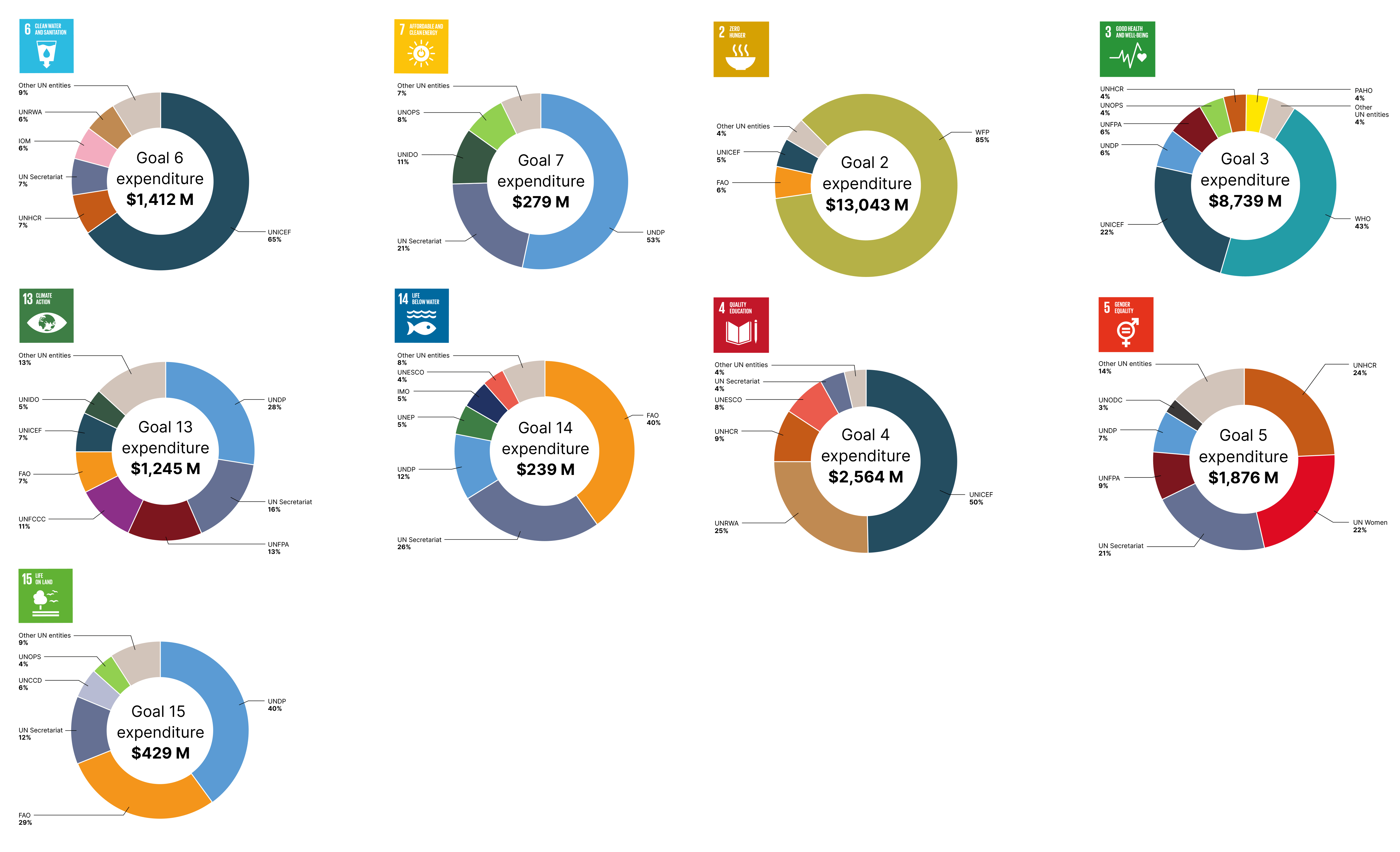 UN expenditure linked to select SDGs as reported by UN entities, 2022 (US$ million and percentage)