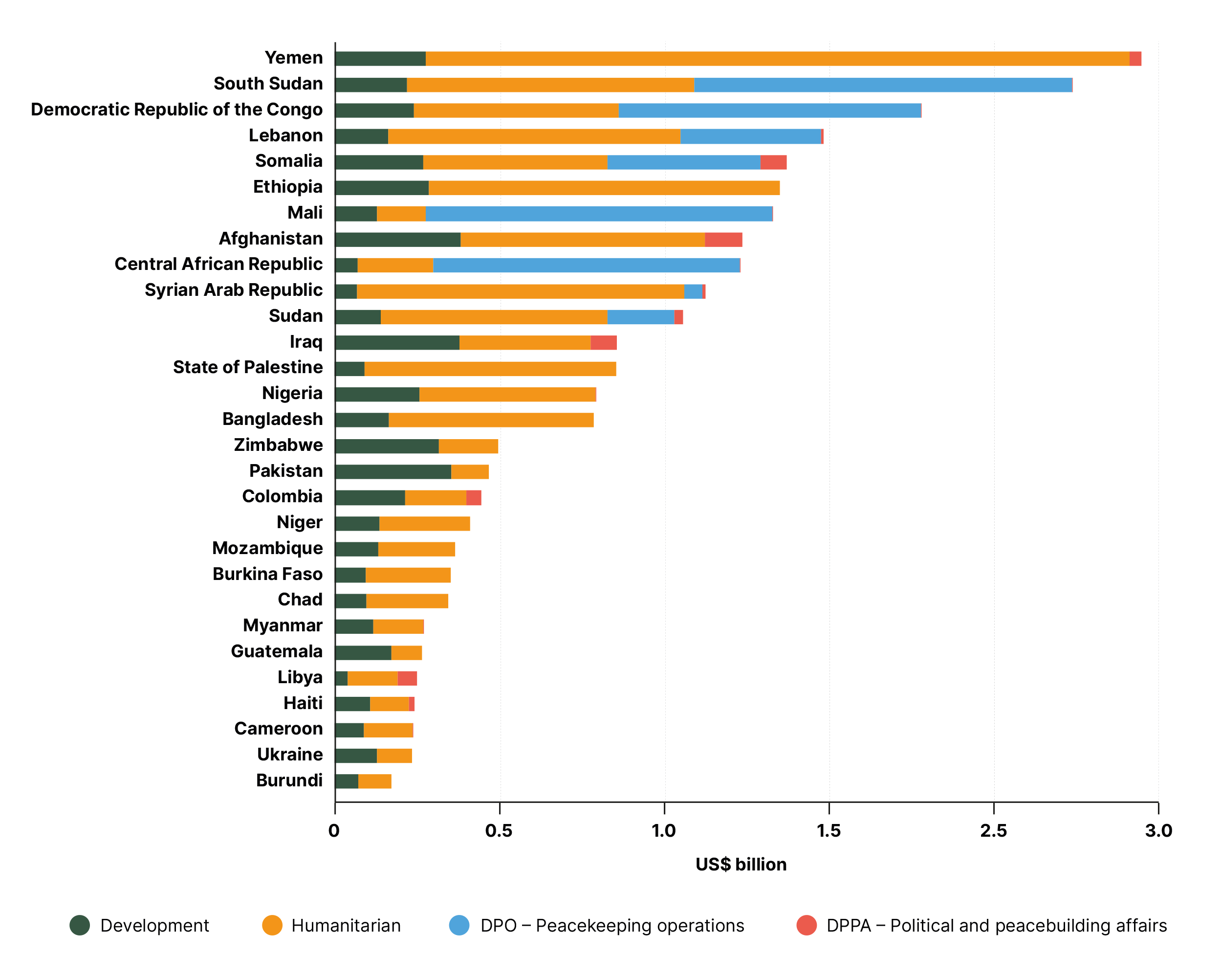 UN humanitarian, development, peace- and security-related expenditure by crisis-affected country, 2021 (US$ billion)