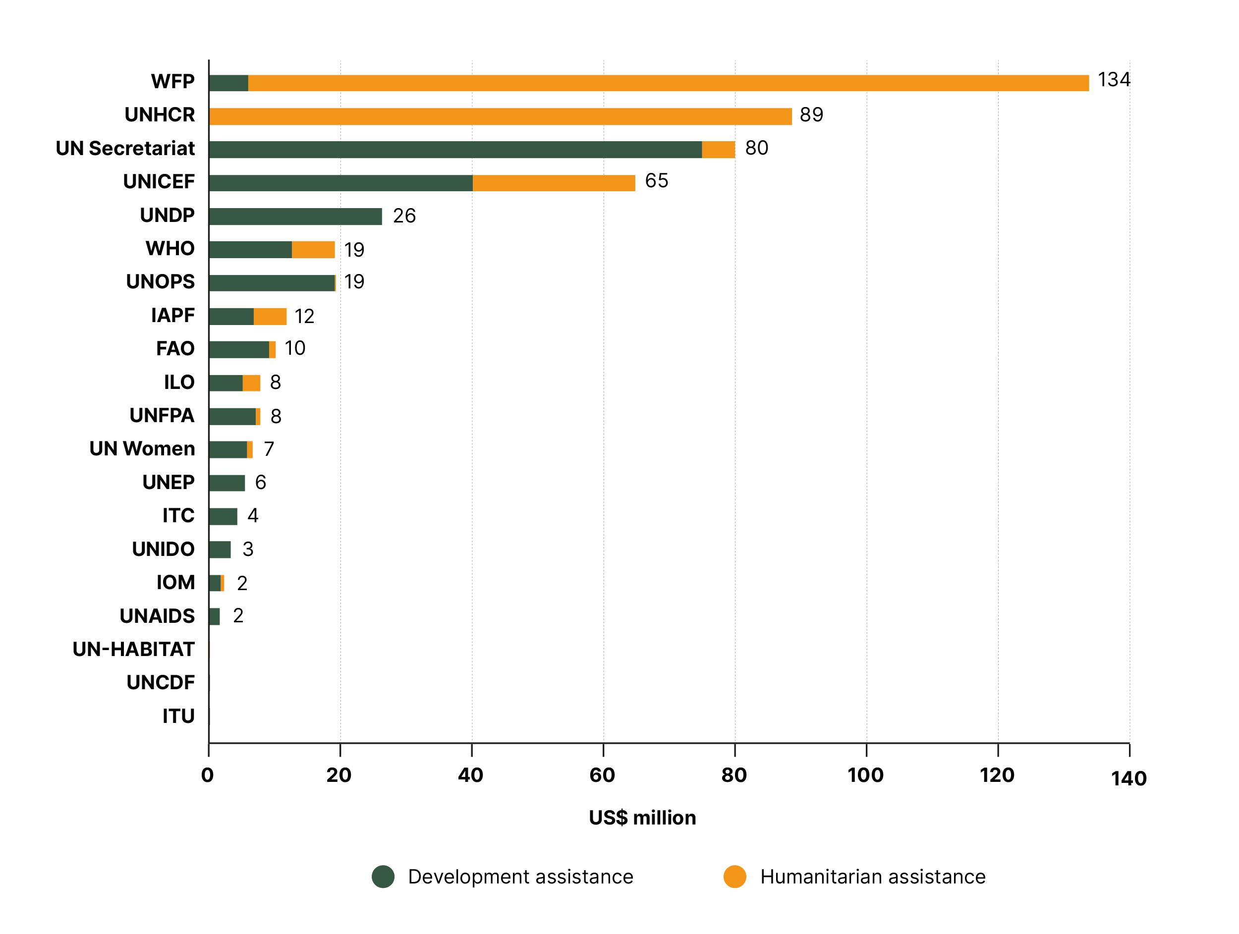 UN operational activities expenditure in Kenya by entity and function, 2021 (US$ million)