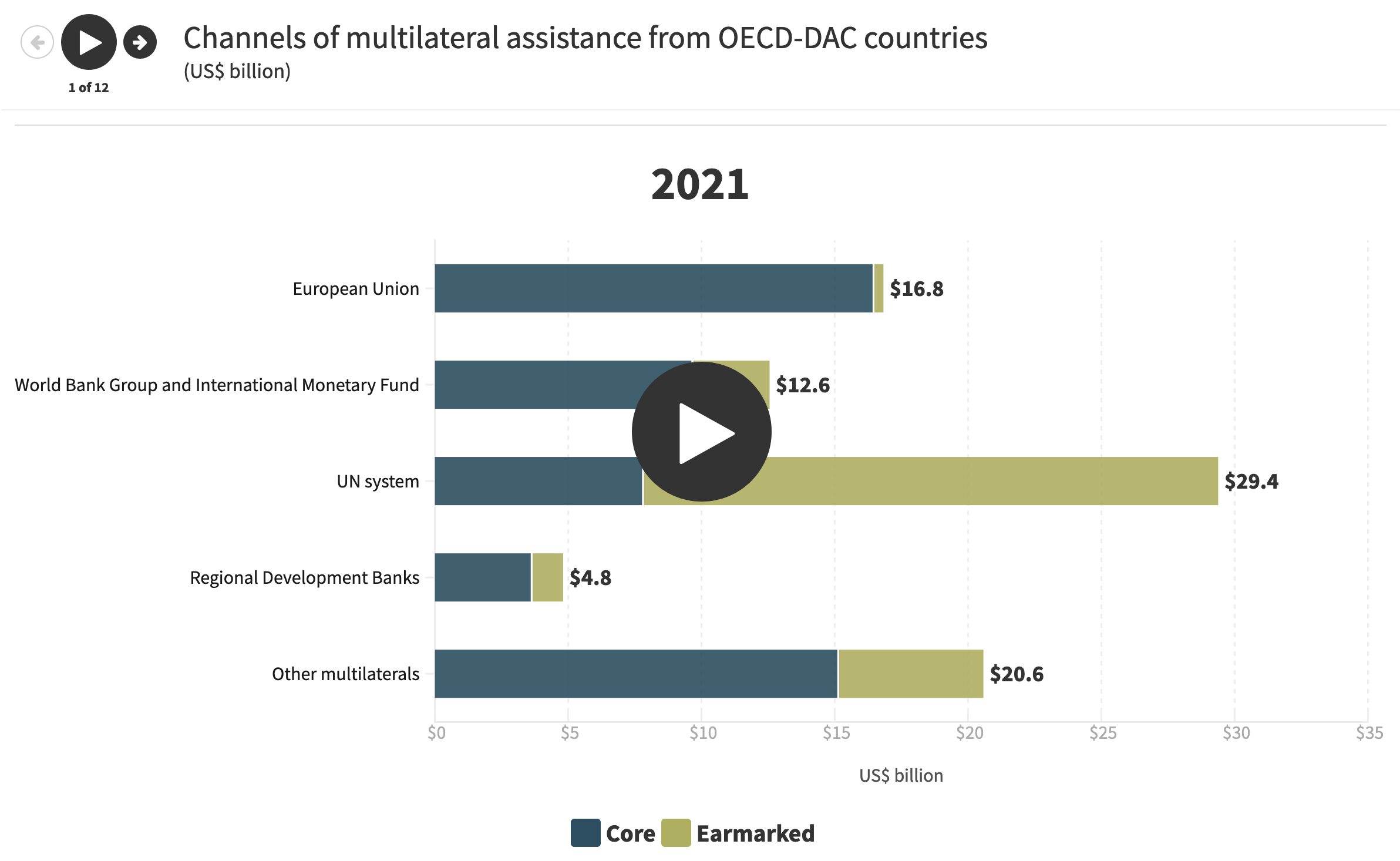 Channels of multilateral assistance from OECD-DAC countries, 2011 and 2021