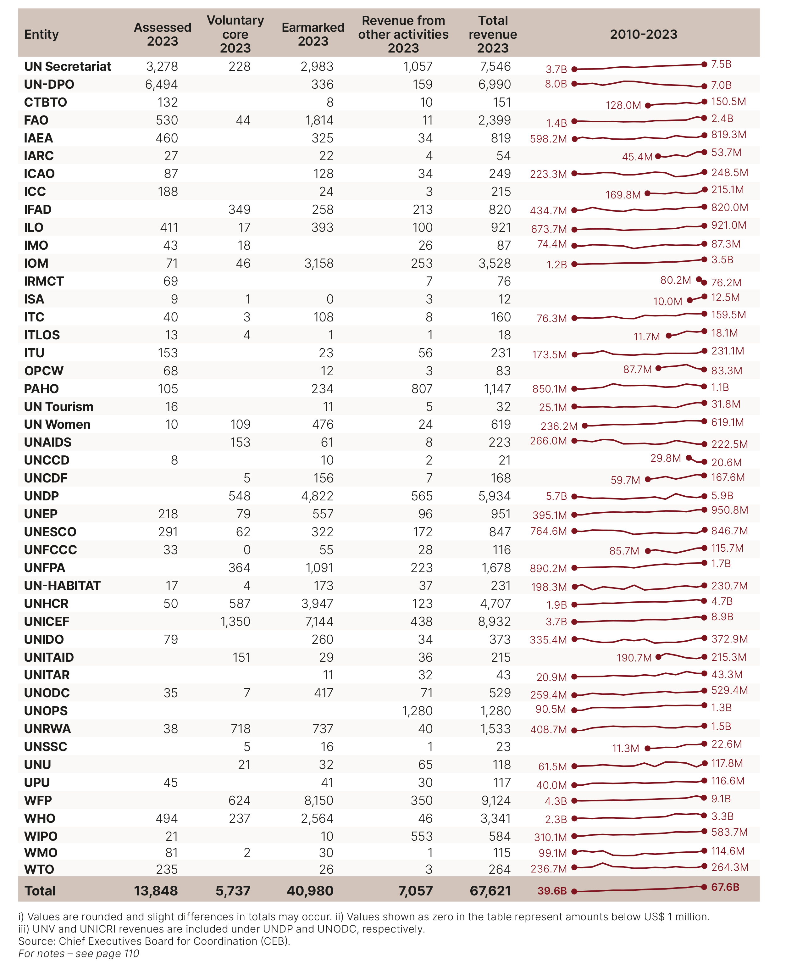 UN system total revenue by entity and financing instrument, 2010–2023 (US$ million)